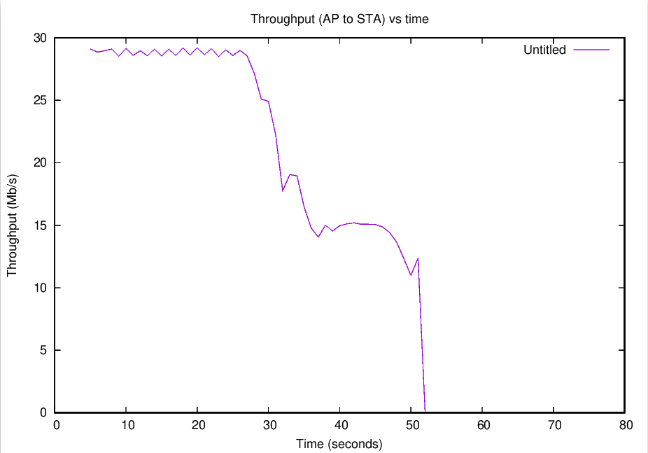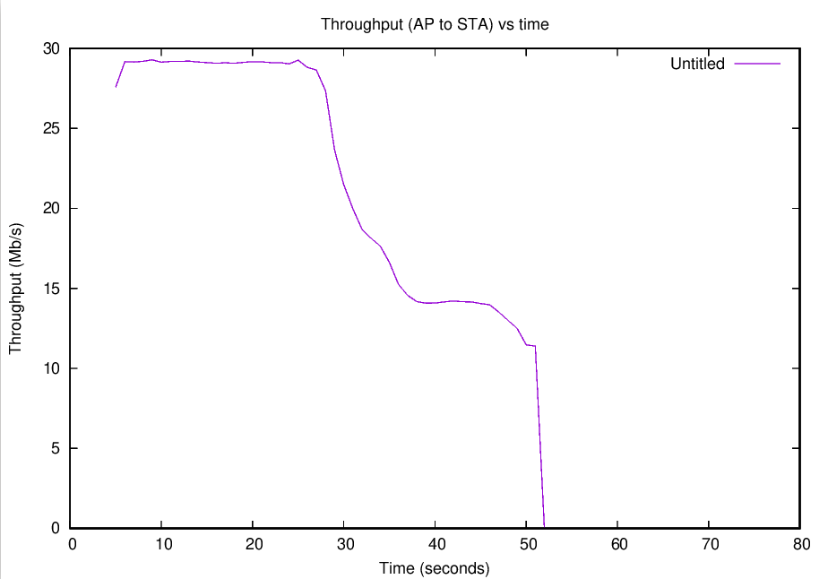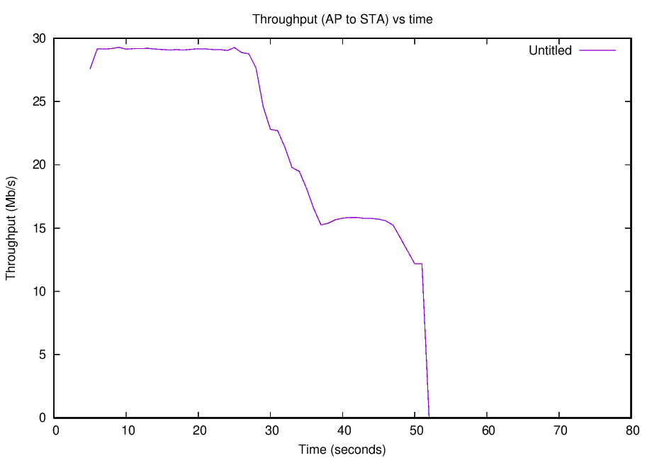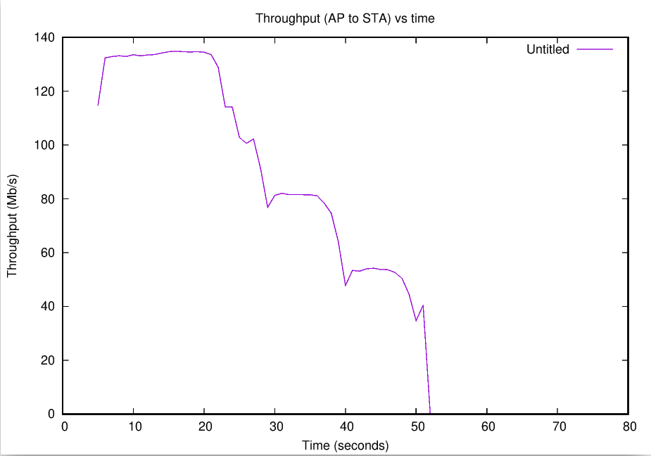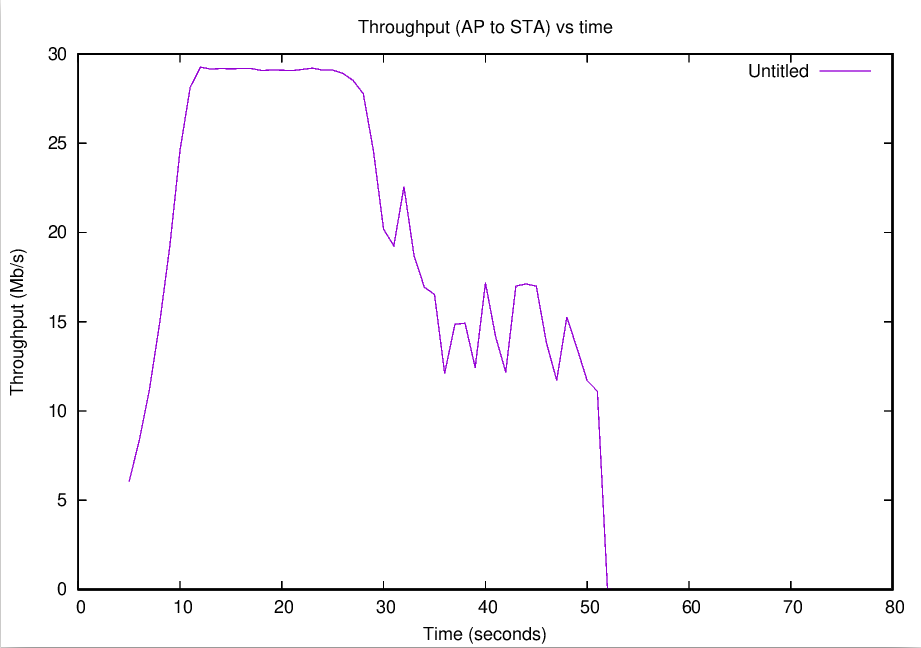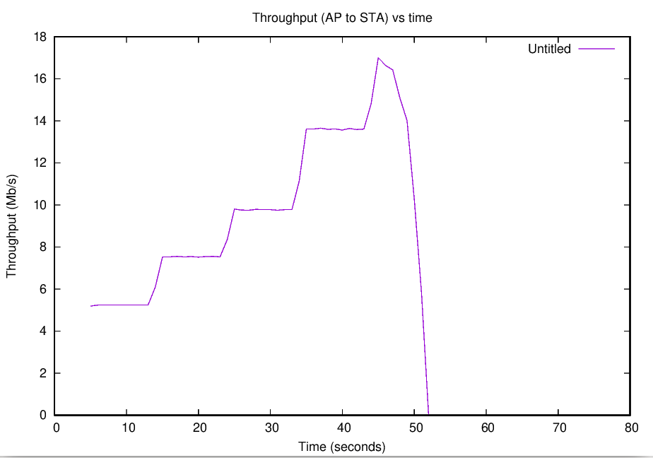 gnuplot.SetTitle ("Throughput (AP to STA) vs time");